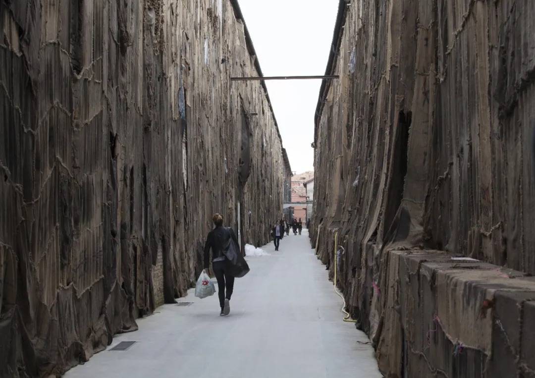 藝術家肖像,圖片由Berggruen Arts & Culture / Palazzo Diedo 提供,攝影:Massimo Pistore Ibrahim Mahama’s portrait,Courtesy of Berggruen Arts & Culture / Palazzo Diedo, Photo by Massimo Pistore 加納藝術家易卜拉欣·馬哈馬(Ibrahim Mahama)生于1987年,是當代非洲藝術界最具國際影響力的藝術家之一。他以巨型裝置作品而聞名,以回收材料——尤其是曾用于運輸可可、煤炭與糧食的舊麻布袋為基礎,展開對全球貿易體系、殖民歷史、物質遷移與資本流動的深刻批判。這些麻布袋產自東南亞,后被加納可可局引入,完成其官方用途后,又被廣泛地流通于加納市場,被用以運輸各種商品,在粗糲的表面上留下物主的姓名、印記與行跡,成為城市肌理的另一種“皮膚”。