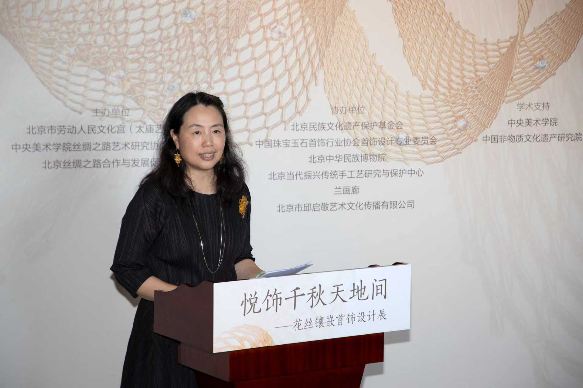 聯(lián)合策展人、參展藝術(shù)家代表、中央美術(shù)學(xué)院設(shè)計(jì)學(xué)院首飾專業(yè)教授、非物質(zhì)文化遺產(chǎn)花絲鑲嵌制作技藝傳承人張凡 聯(lián)合策展人、參展藝術(shù)家代表、中央美術(shù)學(xué)院設(shè)計(jì)學(xué)院首飾專業(yè)教授、非物質(zhì)文化遺產(chǎn)花絲鑲嵌制作技藝傳承人張凡滿懷感恩之情,激動的談到能在太廟這座明清兩代的皇家殿堂中為設(shè)計(jì)師和工匠舉辦展覽,感到萬分榮幸。感謝這個(gè)時(shí)代,讓我們這些工匠登上殿堂,讓人民群眾都能通過此次展覽,在感受非遺傳統(tǒng)工藝與當(dāng)代首飾藝術(shù)的的魅力之同時(shí),能心懷美好的去感恩時(shí)代。此次參展的設(shè)計(jì)師從第一代國家級花絲鑲嵌非遺代表性傳承人到大學(xué)教授、到青年職業(yè)設(shè)計(jì)師、再到在讀大學(xué)生,年齡跨度60多年,體現(xiàn)了我們國家花絲鑲嵌發(fā)展的新面貌,此次展覽以80、90、00后設(shè)計(jì)師為主,匯集祖國從西部到東部、大疆南北的首飾藝術(shù)新作,展現(xiàn)了不同地域發(fā)展下花絲鑲嵌在新時(shí)代的繁榮,呈現(xiàn)了非遺發(fā)展匠士合一的典范。