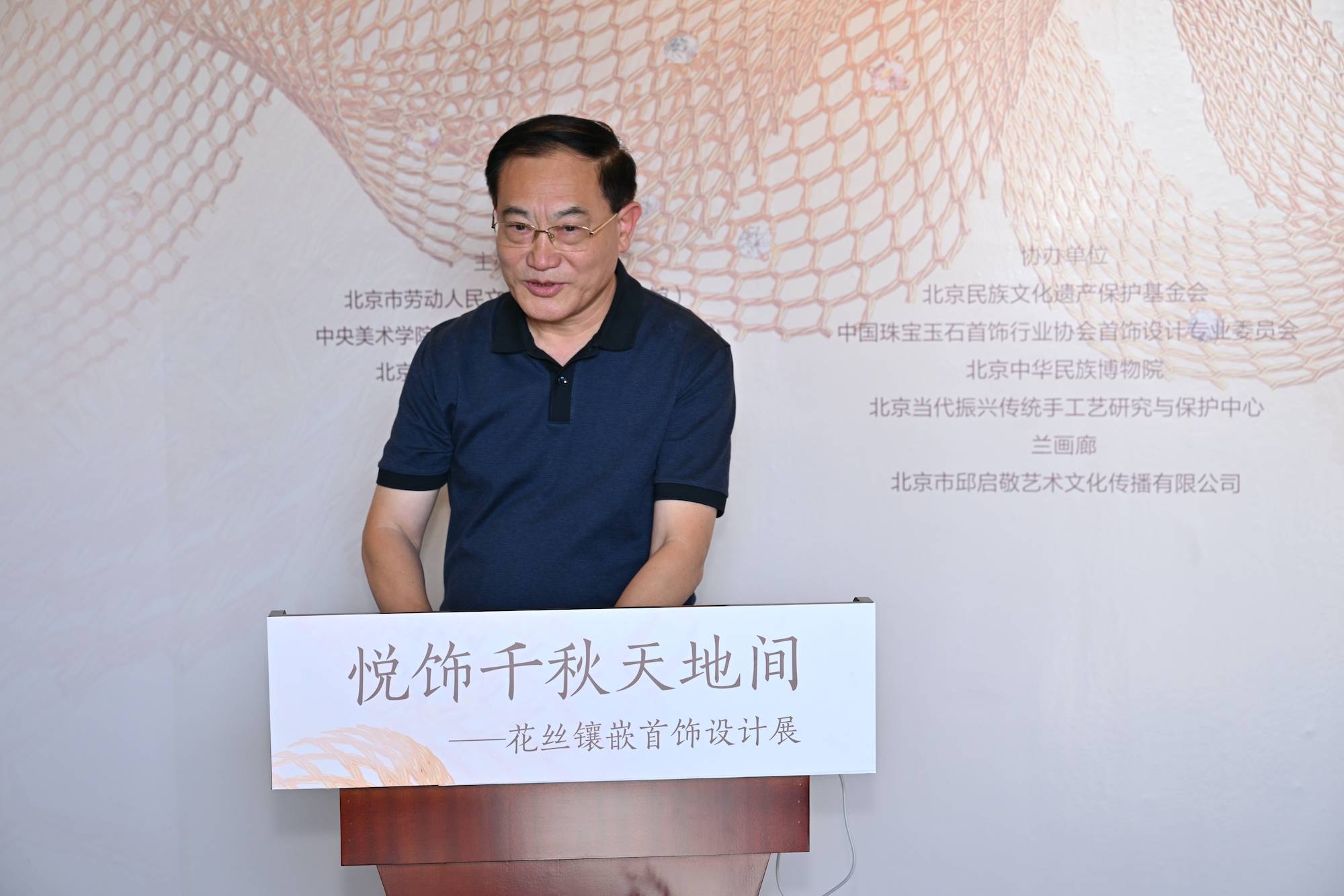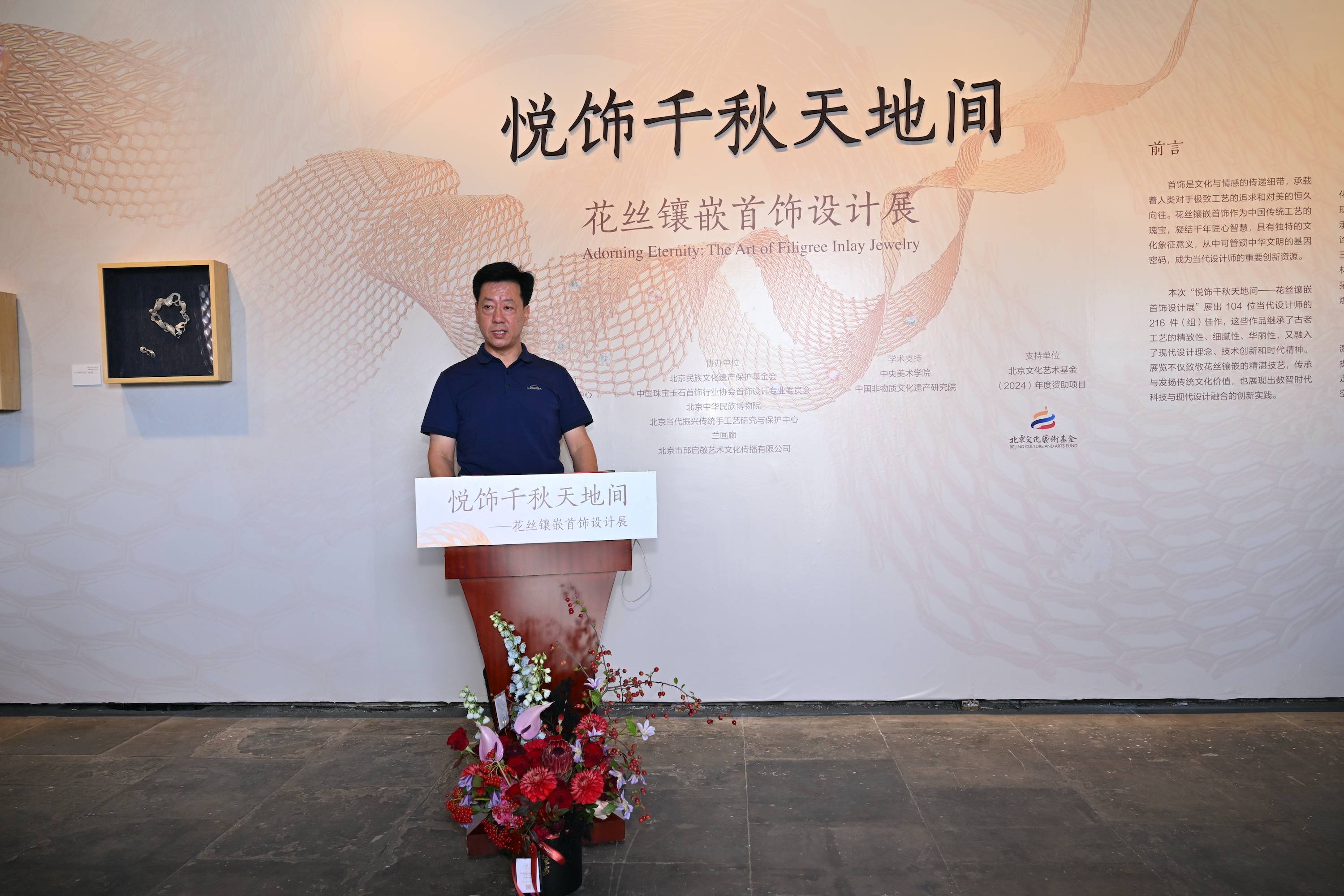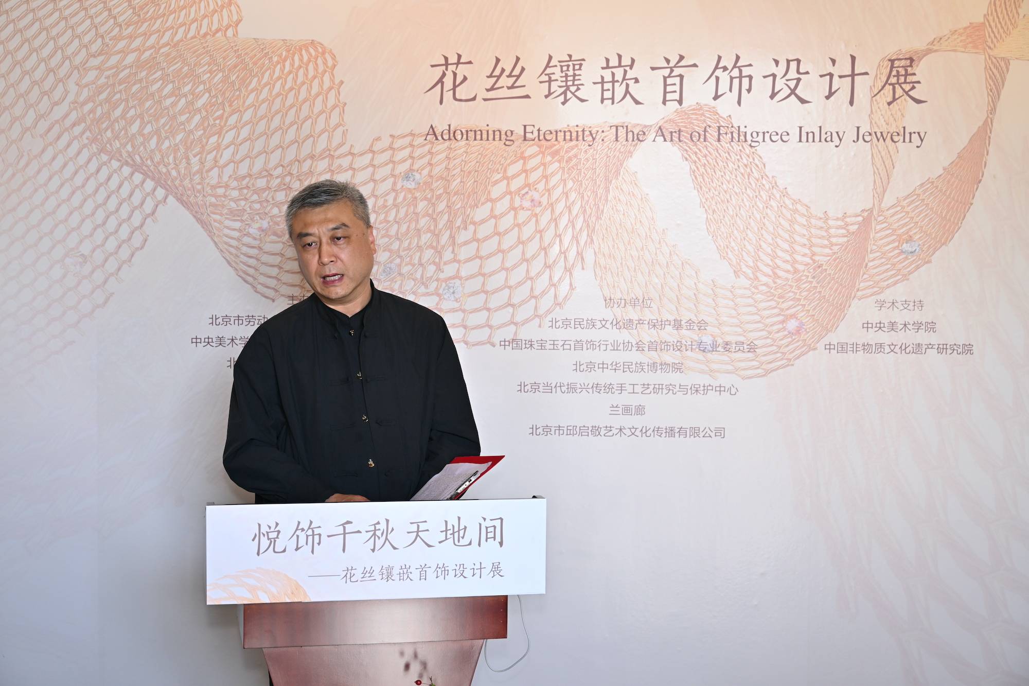 北京市勞動人民文化宮黨委副書記、紀(jì)委書記于海華 主辦方北京市勞動人民文化宮黨委副書記、紀(jì)委書記于海華致辭,他講到,太廟是“國之宗廟”,不僅代表中國古代建筑藝術(shù)的巔峰,更承載著“敬天法祖、傳承永續(xù)”的深厚文化精神。今天,我們將“燕京八絕”之首的花絲鑲嵌藝術(shù)請進(jìn)太廟,不僅讓這項(xiàng)“皇家絕技”回歸它原有的歷史語境,更讓古老工藝在當(dāng)代煥發(fā)新的生機(jī)。以此次展覽為契機(jī),共同守護(hù)這份“指尖上的遺產(chǎn)”,讓花絲鑲嵌成為連接傳統(tǒng)與現(xiàn)代、技藝與生活的文化紐帶。相信這些凝聚勞動與工匠精神的花絲鑲嵌藝術(shù),必將在守正創(chuàng)新中續(xù)寫輝煌!