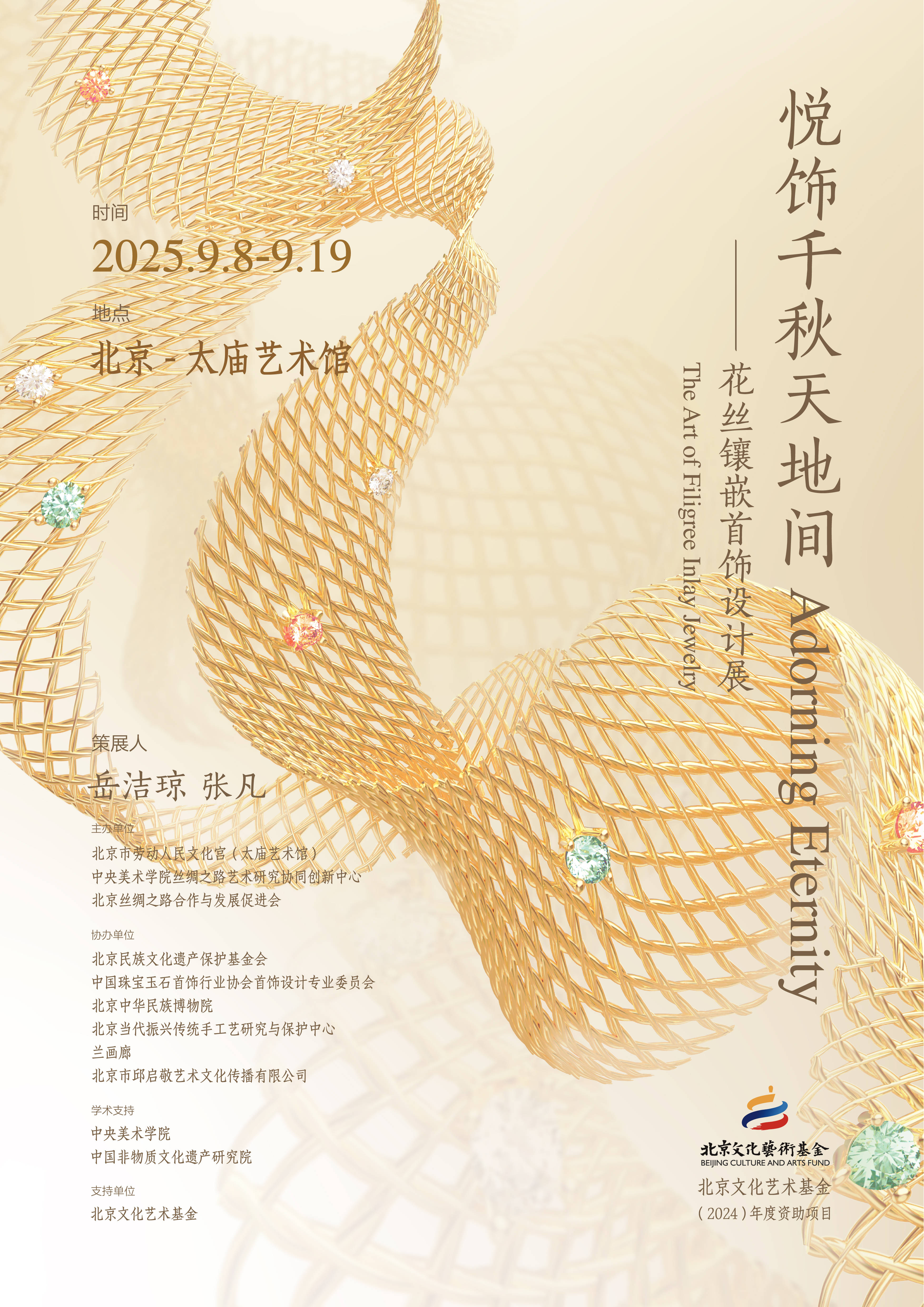 “悅飾千秋天地間——花絲鑲嵌首飾設(shè)計(jì)展”開幕 104位青年設(shè)計(jì)師作品亮相北京太廟藝術(shù)館金秋送爽,天高云淡,在這個(gè)豐收的時(shí)節(jié),“悅飾千秋天地間——花絲鑲嵌首飾設(shè)計(jì)展”于2025年9月8日下午3時(shí)在北京太廟藝術(shù)館隆重開幕。104位青年設(shè)計(jì)師、216件(組)花絲鑲嵌作品相聚于太廟藝術(shù)館,共同開啟一場關(guān)于非遺傳統(tǒng)工藝與當(dāng)代首飾藝術(shù)的視覺盛宴與文化之旅。