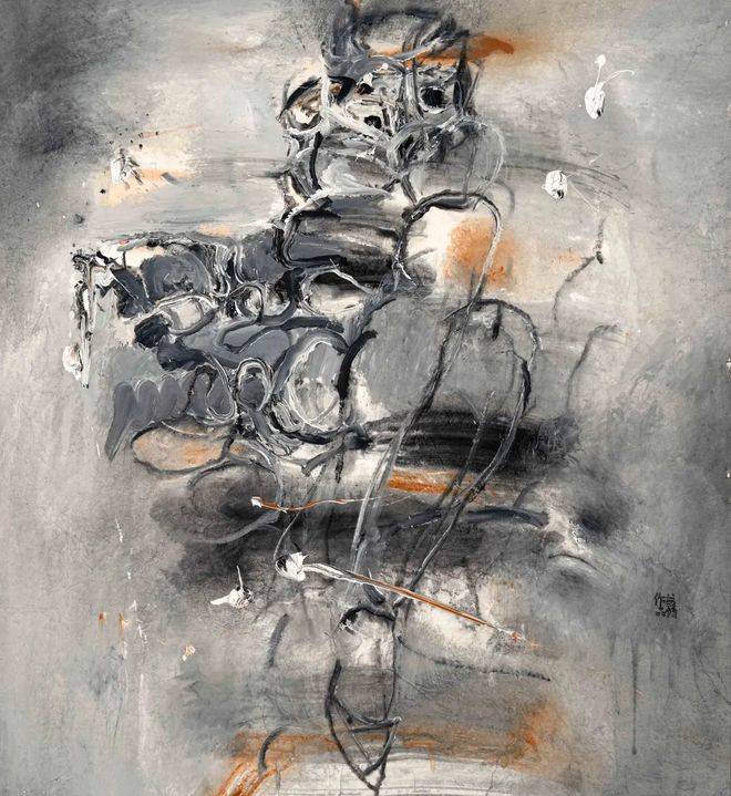 徐善循 煙花系列 2025年作 水墨 丙烯 草木灰 284 × 175 cm 在當代藝術常被“潮流”裹挾的當下,徐善循始終堅守藝術的本質。他的作品不迎合熱點,不追逐喧嘩,而是以沉靜的姿態叩問“存在”的意義,在物質豐裕卻精神焦慮的時代,如何通過藝術安頓心靈。