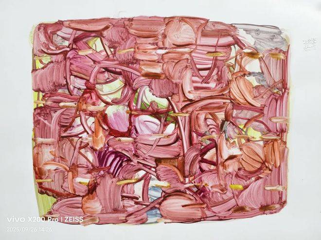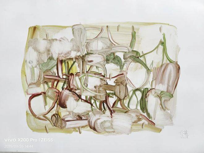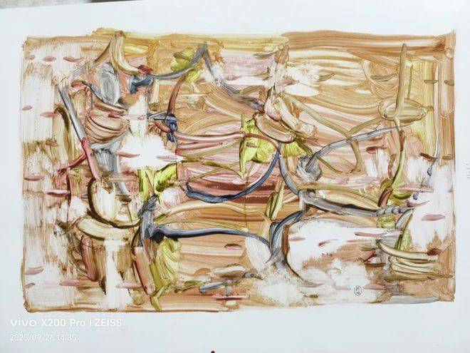 徐善循的藝術是一場向內的修行,也是一次對東西方藝術邊界的從容跨越。他手持手機,屏幕上是與創作看似無關的圖像——這并非臨摹,而是他獨創的“參話頭”:以一念為線索,讓思緒與畫筆如風箏般自由翻飛,卻始終不斷線。在他的畫布上,具象與抽象模糊了界限,恰似“惚兮恍兮,其中有象”。 他以二十載書法修行補足筆墨根基,從現代主義與傳統文化兩條路徑并進,在中國畫現代化的探索中,最終抵達“去分別心”的藝術境界。在他看來,藝術的真諦是人性的自我完善。在他的畫筆下,藝術不再是情緒的宣泄,而是將修為與智慧轉化為繪畫語言,讓每一個觀者都能從中照見自己 “向著那個干凈自由的世界,哪怕挪一寸也歡喜。”