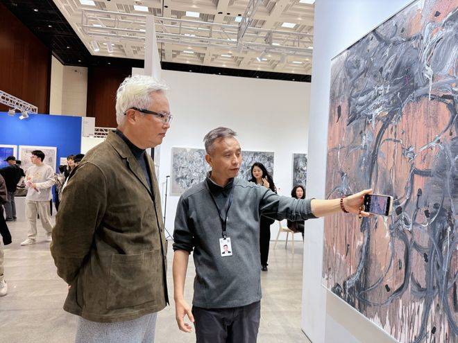 著名演員、企業(yè)家林瑞陽先生與墨谷畫廊館藏人郭華鵬先生參觀西岸藝博會墨谷畫廊徐善循先生個展