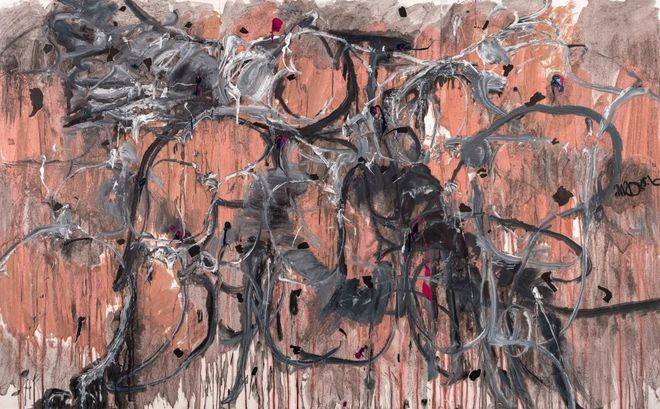 徐善循 煙花系列 2025年作 水墨 丙烯 紅土 草木灰 284 × 175 cm